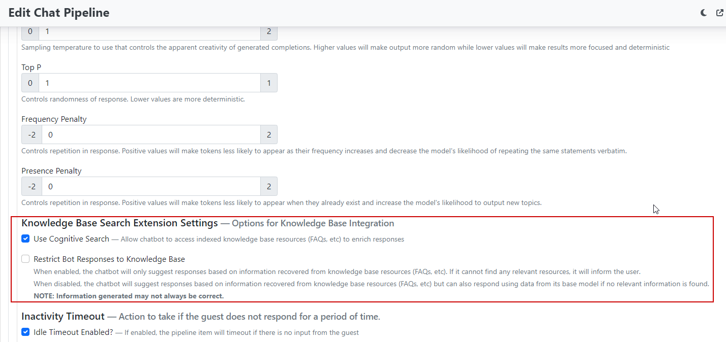 You can also enable the Chat GPT pipeline chatbot to use indexed knowledge base items. With these settings enabled, the chatbot can respond based on the knowledge base, ensuring more accurate and relevant responses to guest queries.