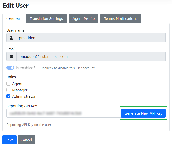 3) If you don’t already have an API key, click the Generate New API Key button.