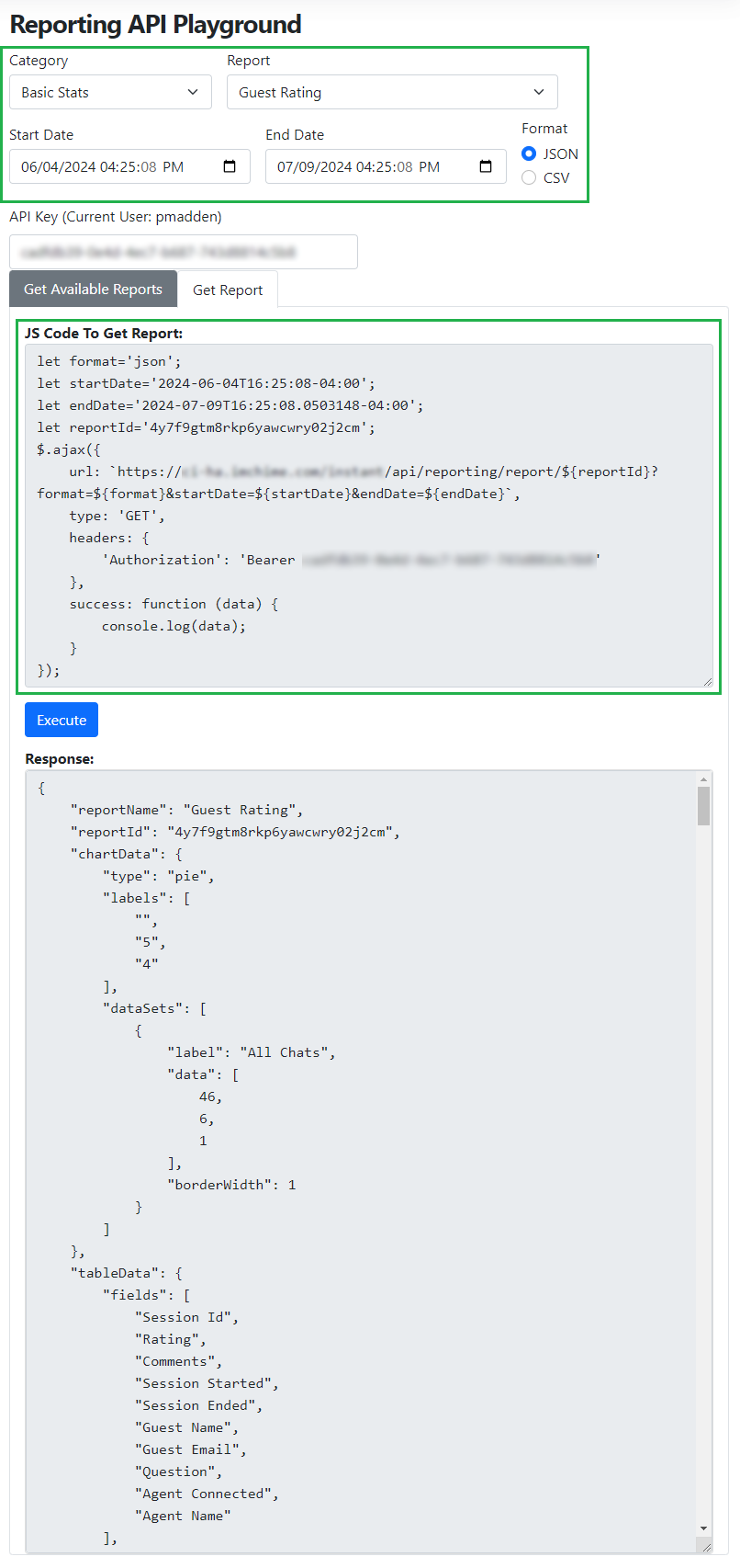 Get Specific Reports - JS Code for Report and Response Format